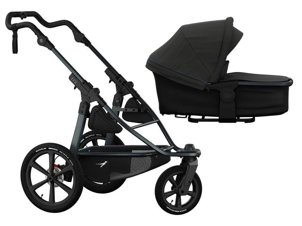 Kočárek tfk pro byl v kombinaci s korbou a sportovní sedačkou, obě varianty nastavené do sedící pozice, testován a schválen pro sportovní využití.