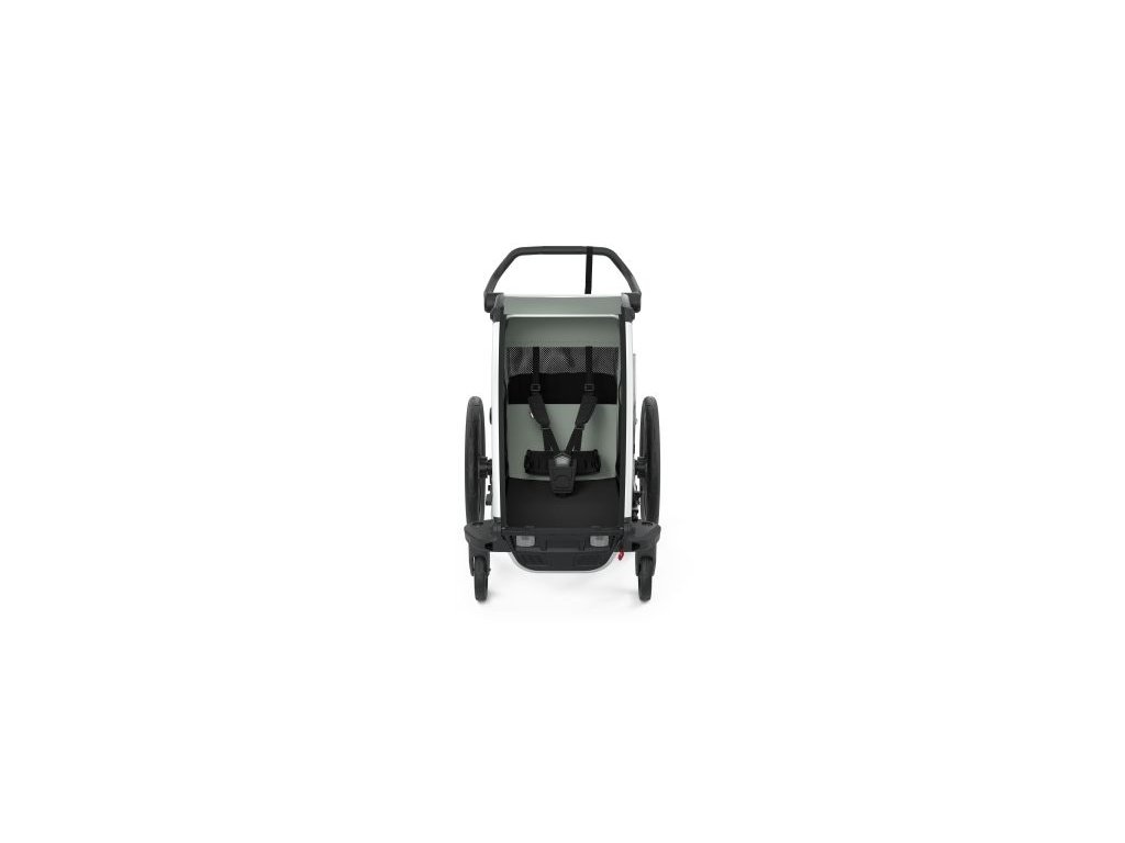 Vozík lze použít nejen při jízdě za kolem, ale lze jej jednoduše upravit pro běžecký trénink, procházky v přírodě, výlety na běžkách, nebo jako standardní kočárek pro sedící děti. Je navržen tak, aby uchránil Vaše děti před jakýmkoli nebezpečím. Je vybaven pětibodovým bezpečnostním pásem a integrovanou ochranou proti převrácení. Díky odpružení můžete s vozíkem vyrazit i do náročnějšího terénu.
