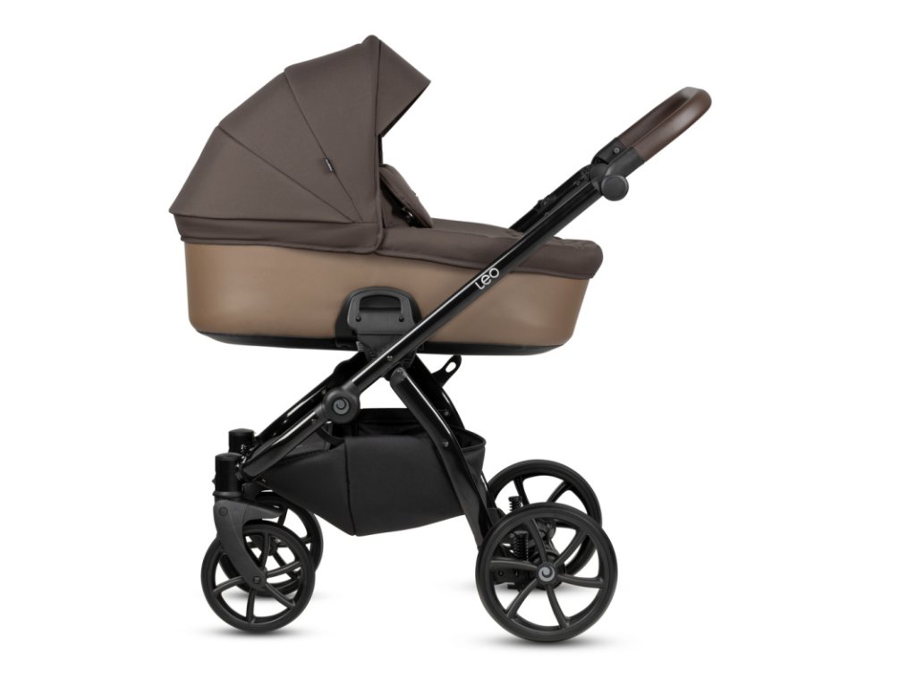 Matný hliníkový podvozek a vysoce kvalitní textilie s detaily z umělé kůže dotváří nadčasový vzhled kočárku.