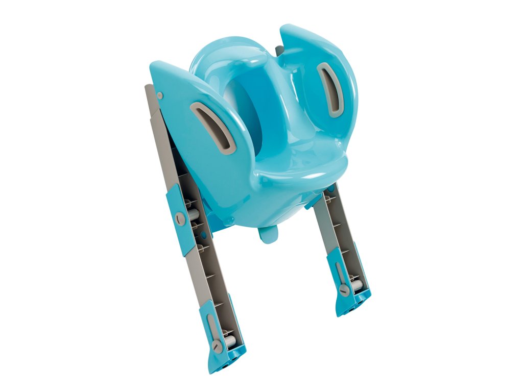 Kiddyloo židlička a schůdky v jednom je ideální dětská pomůcka pro bezpečný WC trénink, a to zejména díky jejímu přiléhavému tvaru a protiskluzovému prvku. Židlička se dokonale přizpůsobí všem toaletám (43–48 cm vysokým). Schůdky jsou výškově nastavitelné, stejně jako 2stupňová výška opěrky pro nožičky. Přičemž bezpečnostní záchytné kleště v zadní části sedátka umožňují produktu zůstat na místě, když dítě leze na toaletu. K tomu židlička disponuje i ergonomickými rukojeťmi pro ještě pohodlnější použití. Kiddyloo židlička je praktická i tím, že je složitelná a snadno skladovatelná.