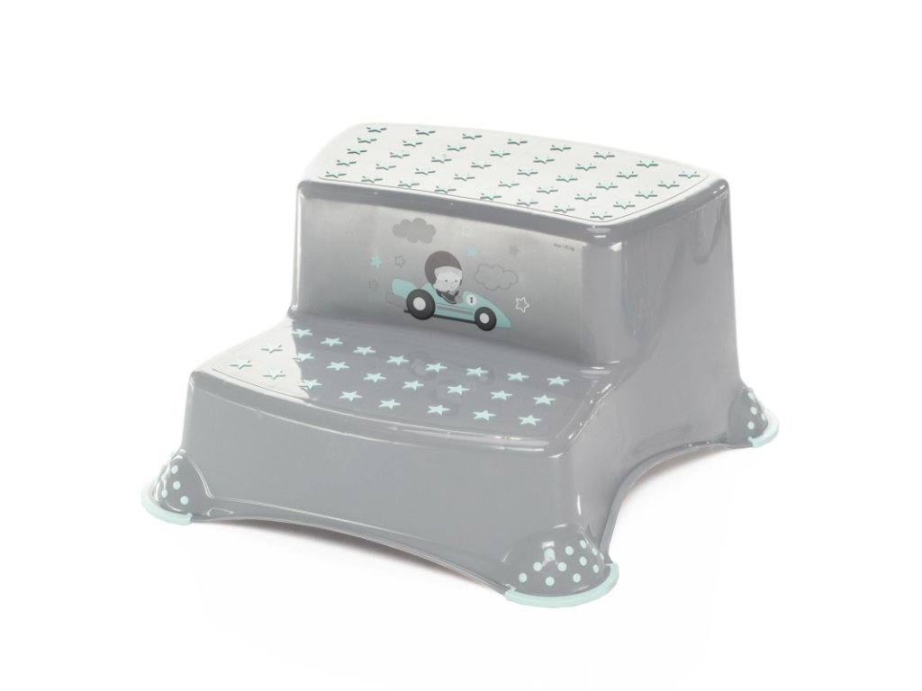 Dvojstupínek pro malé děti k umyvadlu a k WC s protiskluzovou úpravou pomáhá bezpečně si osvojovat základní hygienické návyky.